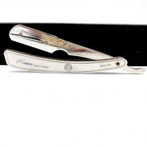 A continuación tenemos una navaja de afeitar totalmente tradicional sencilla de agarrar y muy cómoda para usarla a nivel profesional pero que también será una buena opción para usarla en casa si tienes una buena técnica. El diseño de esta navaja es bonito y además tendrá una larga vida útil si la tratas como es debido, la lavas, la secas y la cuidas después de cada uso.