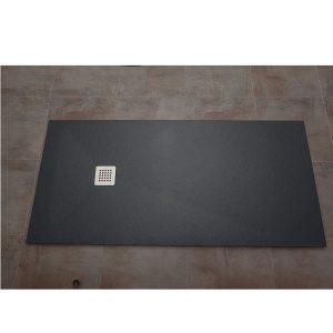 Si te interesa encontrar un plato de ducha de resina con acabados oscuros este modelo tipo pizarra te encantará. Se trata de un plato de ducha de resina extraplano con acabados antideslizante que ha sido elaborado con cargas minerales y está revestido de gel coat. Tiene una altura de unos tres centímetros y también incluye la rejillas y la válvula. Además el hueco del desagüe se ubica a unos 45 centímetros del borde en las diferentes medidas y si necesitas otros colores o medidas puedes pedirlo sin compromiso.